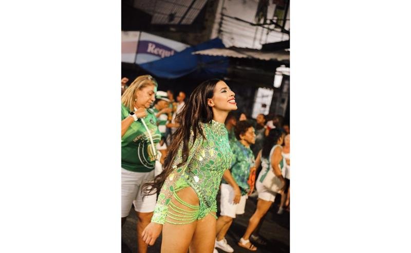 Anunciada na segunda-feira, Ana apostou em um body ousado para seu primeiro contato com os componentes da verde e branca. Exibindo carisma e simpatia, a mineira de Juiz de Fora foi recebida com carinho pela comunidade e pelo parceiro Pai Dário de Ossain. Cria da Serrinha, o babalorixá estará ao lado de Ana no desfile oficial, encerrando a apresentação da escola que este ano tem Conceição Evaristo como grande homenageada.