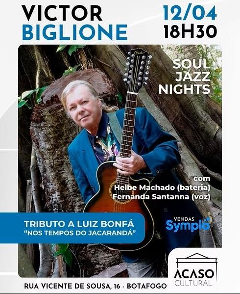 O aclamado guitarrista e compositor Victor Biglione é o convidado da nova edição do projeto Soul Jazz Nights, na Acaso Cultural, em Botafogo. O show fará um tributo especial ao ícone da música brasileira Luiz Bonfá no dia 12 de abril, domingo, às 18h30.